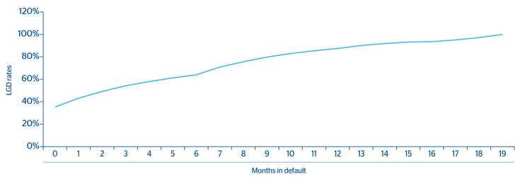 LGD of BBVA credit cards in Spain (for domestic customers and by time in default)