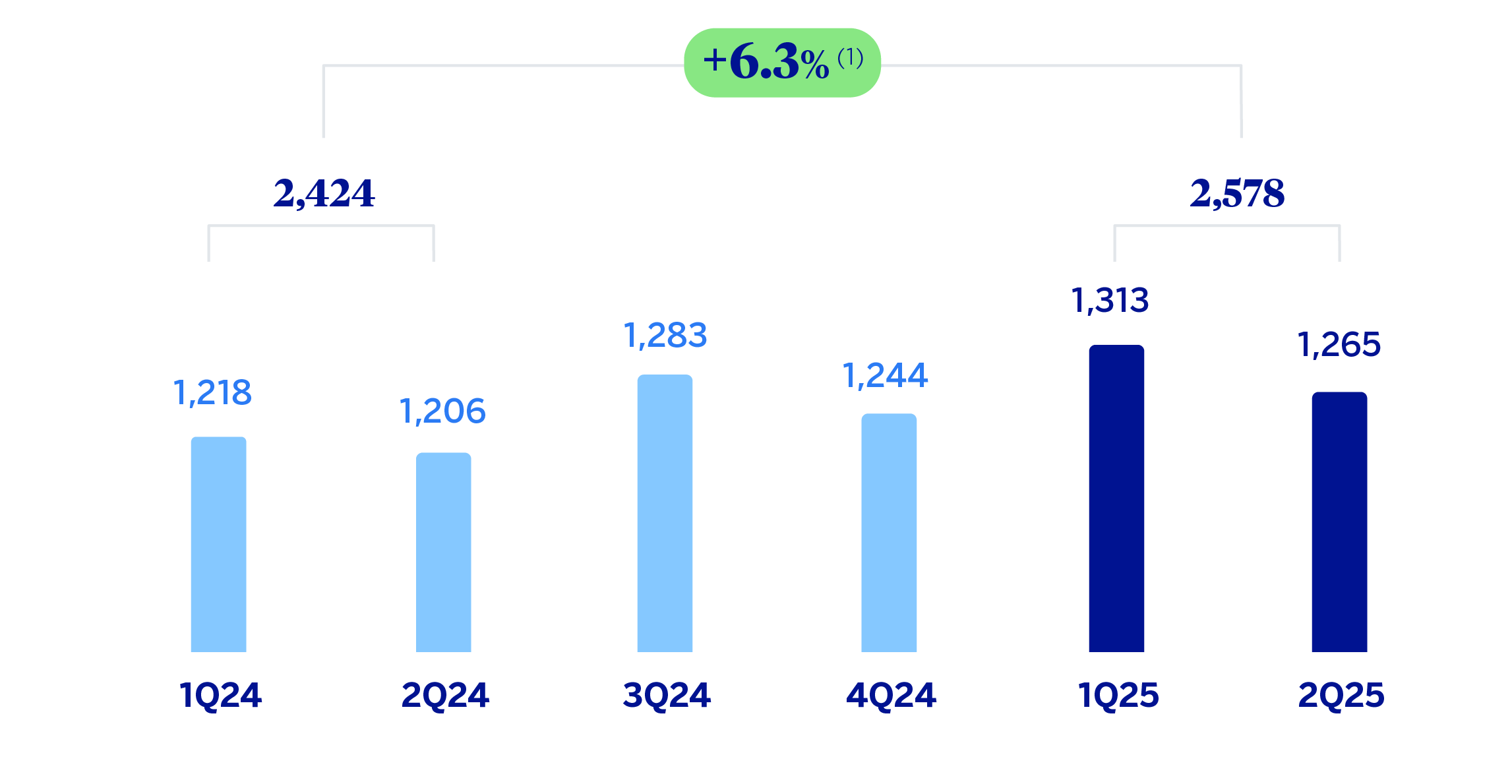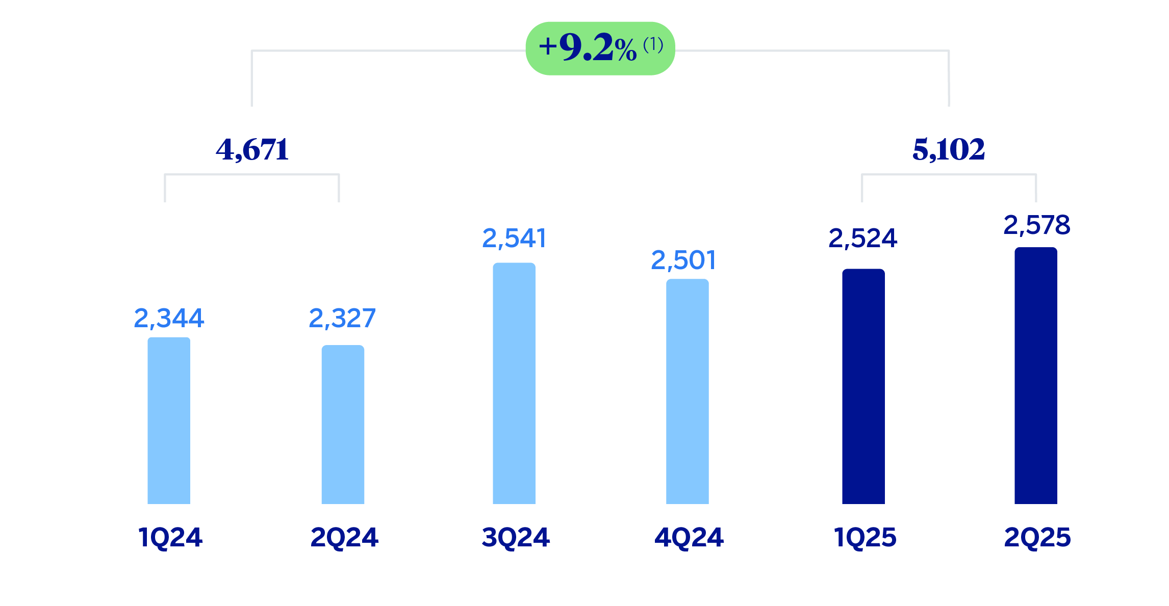 Customer deposits under management increased by 6.9% in the first half of 2025, with growth in customer deposits of 4.4%, thanks to the commercial boost in a highly competitive environment to attract liabilities and of 10.5% in off-balance sheet resources.