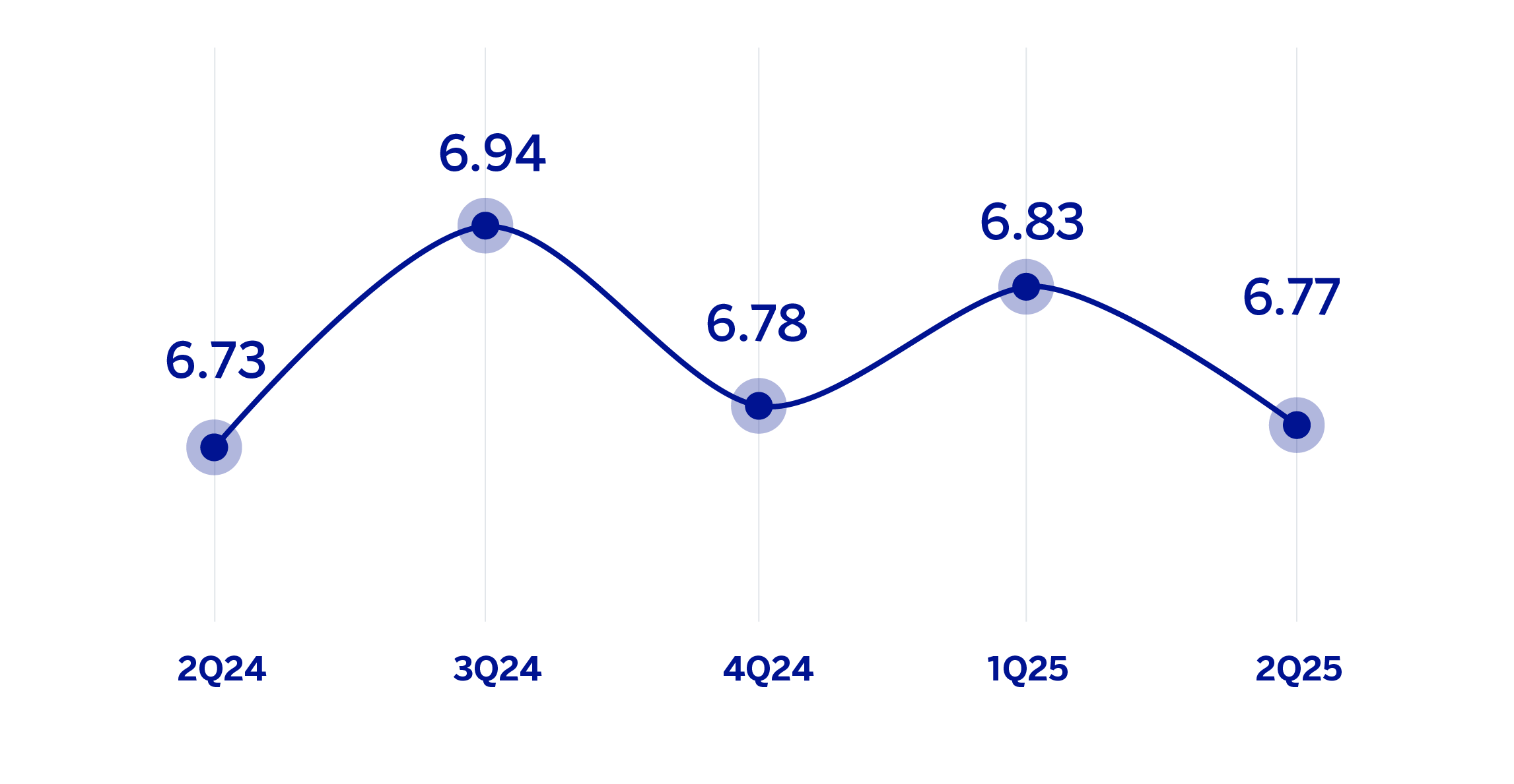 With regard to the asset quality indicators, the NPL ratio stood at 2.7% at the end of June 2025, which represents an increase of 26 basis points compared to the end of March, mainly explained by the growth of non-performing loans in the retail portfolio, as a result of higher inflows and lower write-offs. Compared to the end of the year, this indicator remains stable. On the other hand, the NPL coverage ratio was 125% at the end of June 2025, which represents a decrease compared to the end of March mainly explained by the aforementioned higher volume of inflows of non-performing loans.