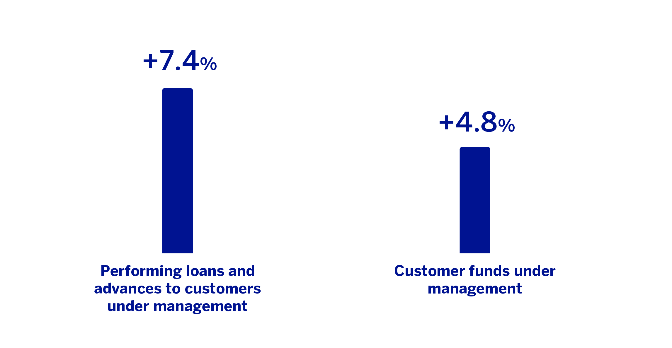 Customer funds under management increased at a rate of 2.9%, with growth of 3.3% in customer deposits and stability in off-balance sheet funds (+0.6%).