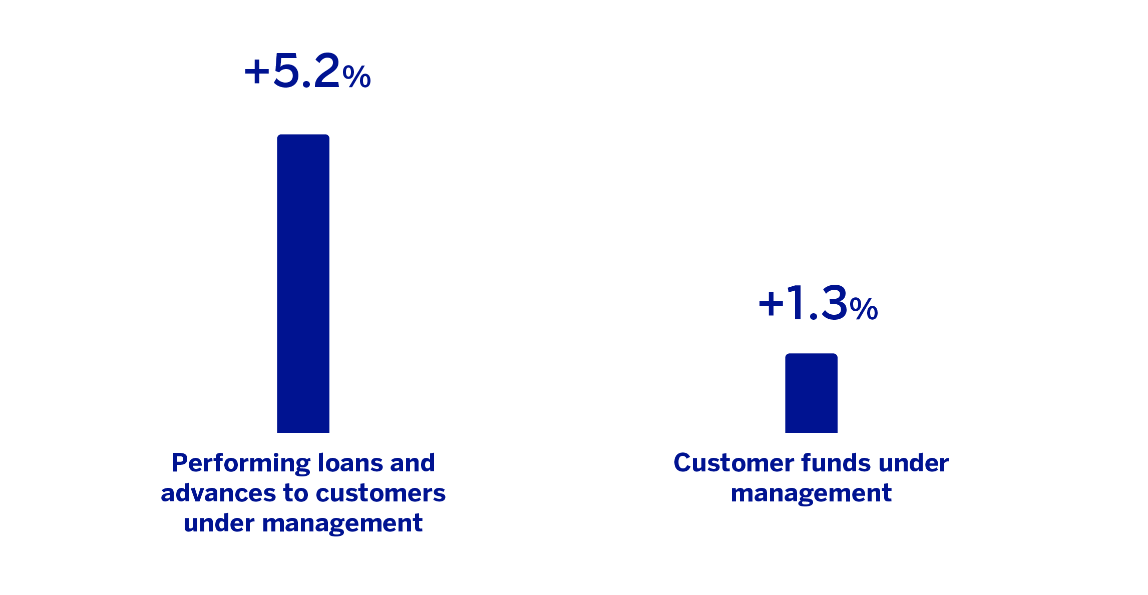 Total customer funds grew by 1.3%, with an increase in off-balance sheet funds (mutual and pension funds) of 3.6% and stability in customer deposits, which grew by 0.2%.