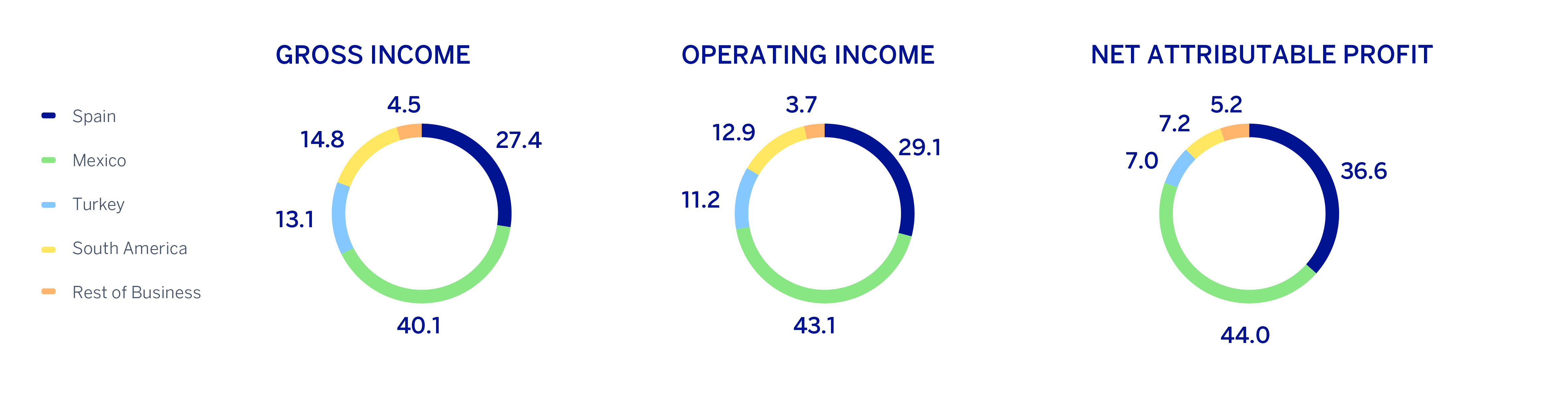 Finally, it should be noted that, as usual, in the case of the different business areas of Mexico, Turkey, South America and Rest of Business, and, additionally, CIB, in addition to the year-on-year variations applying current exchange rates, the variations at constant exchange rates are also disclosed.