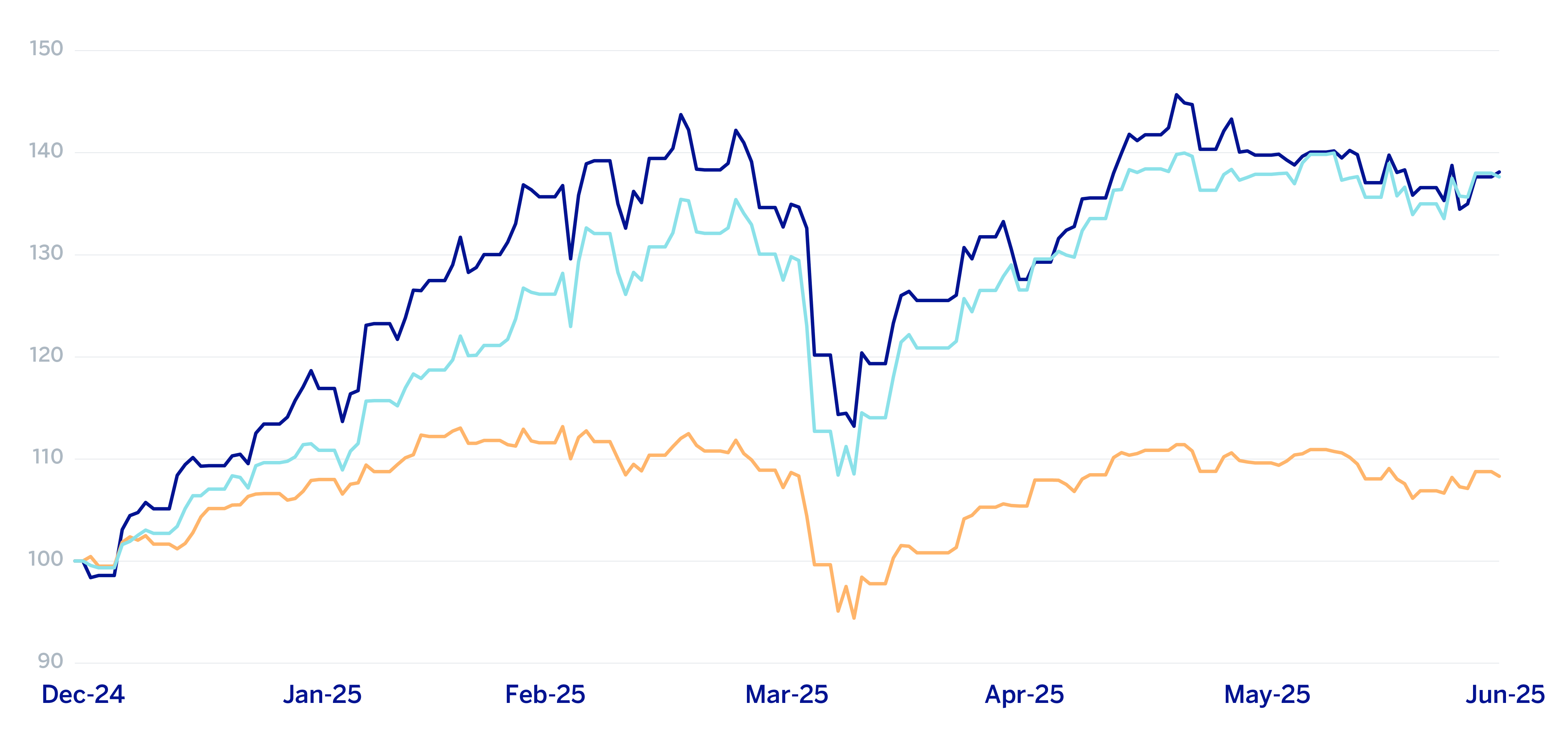 The main indexes have shown a positive performance during the second quarter of 2025. In Europe, the Stoxx Europe 600 index rose by 6.6% compared to the end of March 2025, and in Spain the Ibex 35 increased by 20.7% in the same period, showing a better relative performance. In the United States, the S&P 500 index increased by 5.5%.