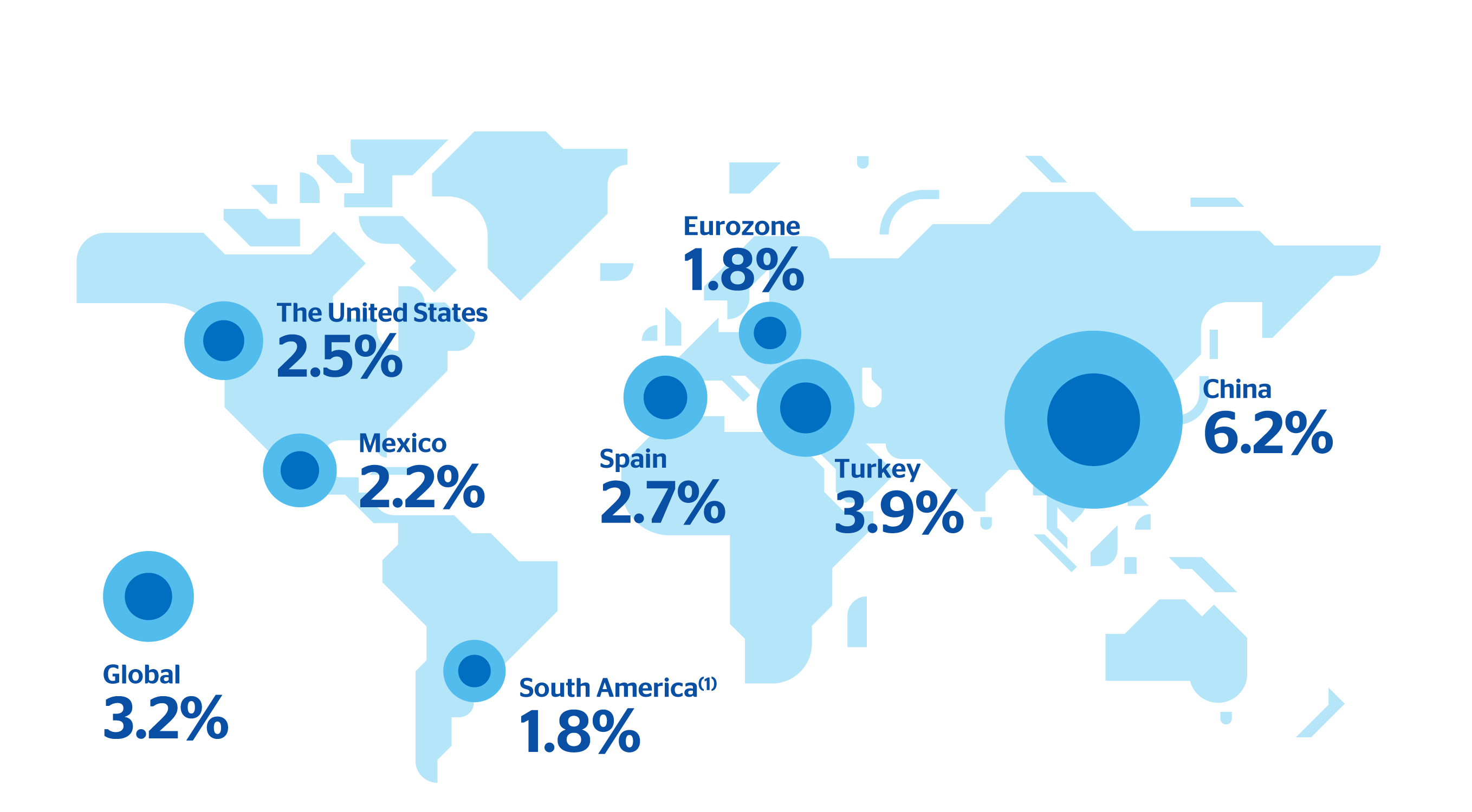 (1) South America includes Argentina, Bolivia, Chile, Colombia, Paraguay, Peru and Uruguay.