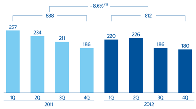 In lending, the commercial and industrial sectors continued to perform well, despite the uncertainty regarding fiscal policy. In the fourth quarter, this growth is even clearer in commercial real estate (companies with collateral) and in credit card balances (due to the Christmas holiday season). Lending conditions are likely to remain strict in 2013, particularly for residential loans, in light of the high financial burden of households.