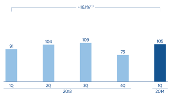 Operating income(Million euros at constant exchange rate) ![]() (1) At current exchange rate: +6.4% |