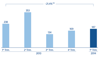 Beneficio atribuido(Millones de euros a tipos de cambio constantes) ![]() (1) A tipos de cambio corrientes: -16,4% |