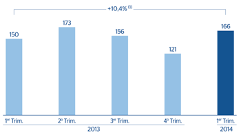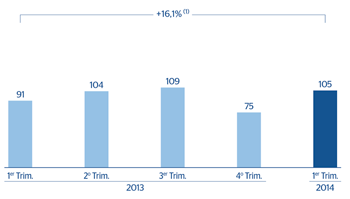 Beneficio atribuido(Millones de euros a tipo de cambio constante) ![]() (1) A tipo de cambio corriente: +11,8% |