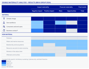 BBVA has identified material impacts, risks and opportunities within several sub-topics, which in turn correspond to four general topics: