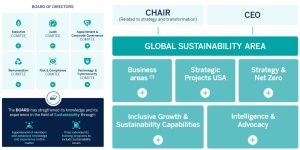Thus, the execution of the Sustainability strategy is transversal in nature in the Group, and it is the responsibility of all its areas to progressively incorporate it into their strategic agenda and work dynamics. To this end, the Global Sustainability Area has the responsibility of designing and promoting the execution of the Group’s strategic sustainability agenda (with a focus on the fight against climate change, the protection of natural capital and inclusive growth) and business development in this area.