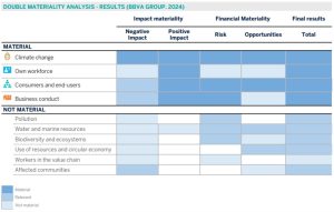 BBVA has identified material impacts, risks and opportunities within several sub-topics, which in turn correspond to four general topics: